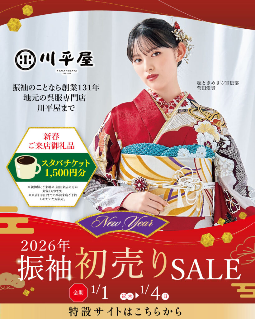 お嬢様の振袖は創業130年の川平屋にお任せください