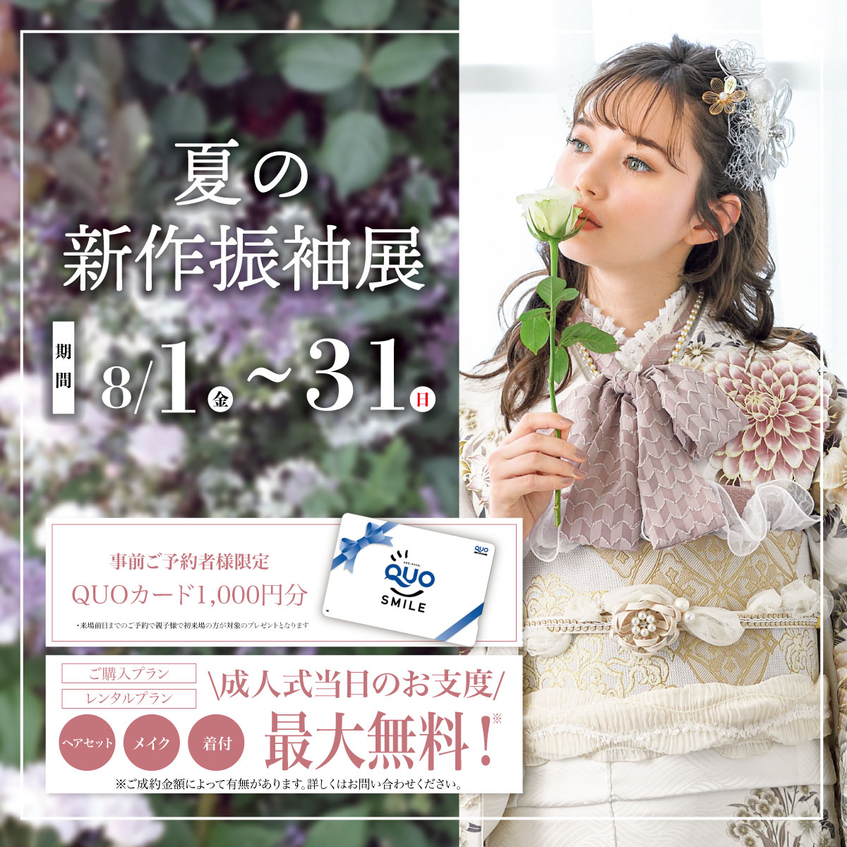 一生に一度の大切な20歳の記念日を迎えるお嬢様、ご家族様をプロのスタッフが全力でサポートします。