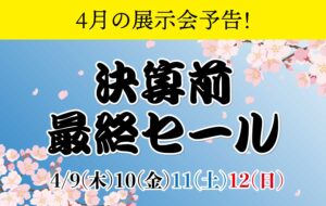【次回展示会予告】決算前最終セールNew!!