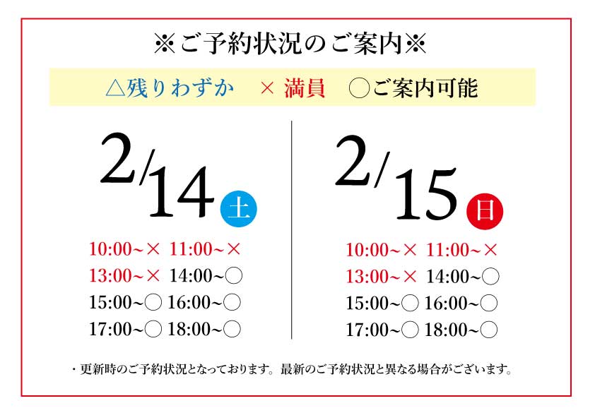 昨今の情勢によりタイムスケジュールを設けてのご案内をしております
