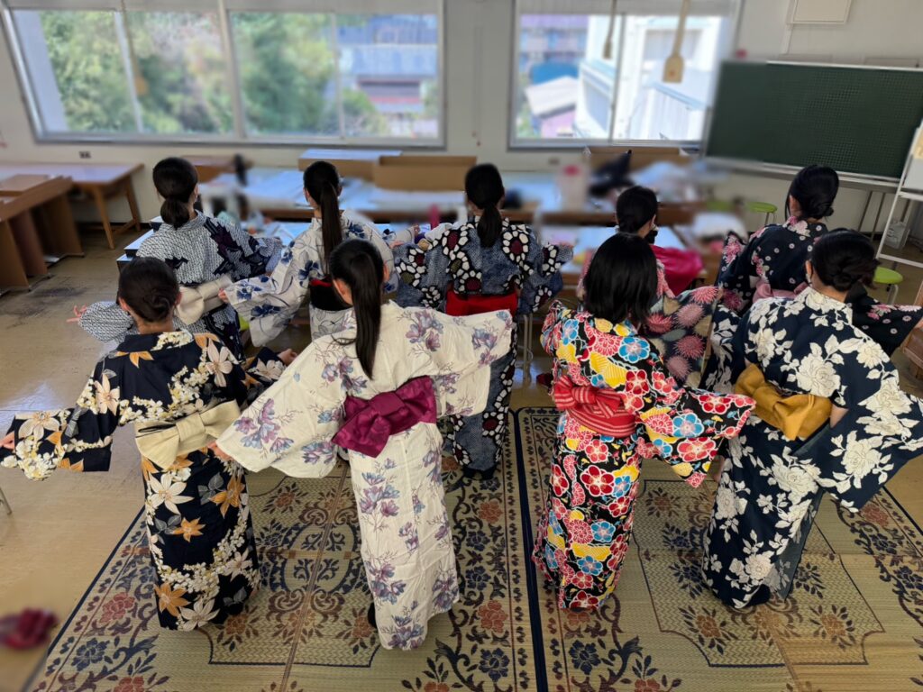 実は毎年着物についての授業と浴衣の着付け講習を猿投農林高校から依頼を頂いて行かせて頂いています。