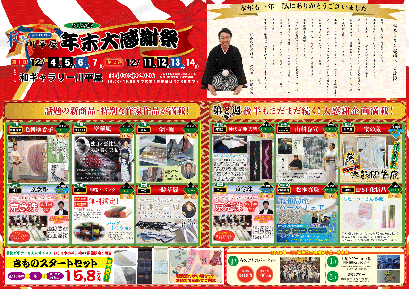 を目玉商品といたしまして、全国各地の作家先生、問屋様の逸品も年末特別価格にてご用意!