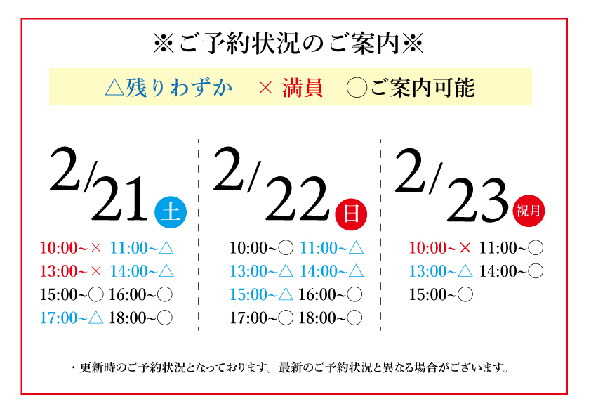 ・開催日が近づくにつれご来場枠がいっぱいになる場合がございます