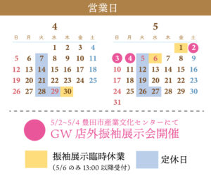 【振袖展:臨時お休みのご連絡】4/30、5/1、5/6(午前中)